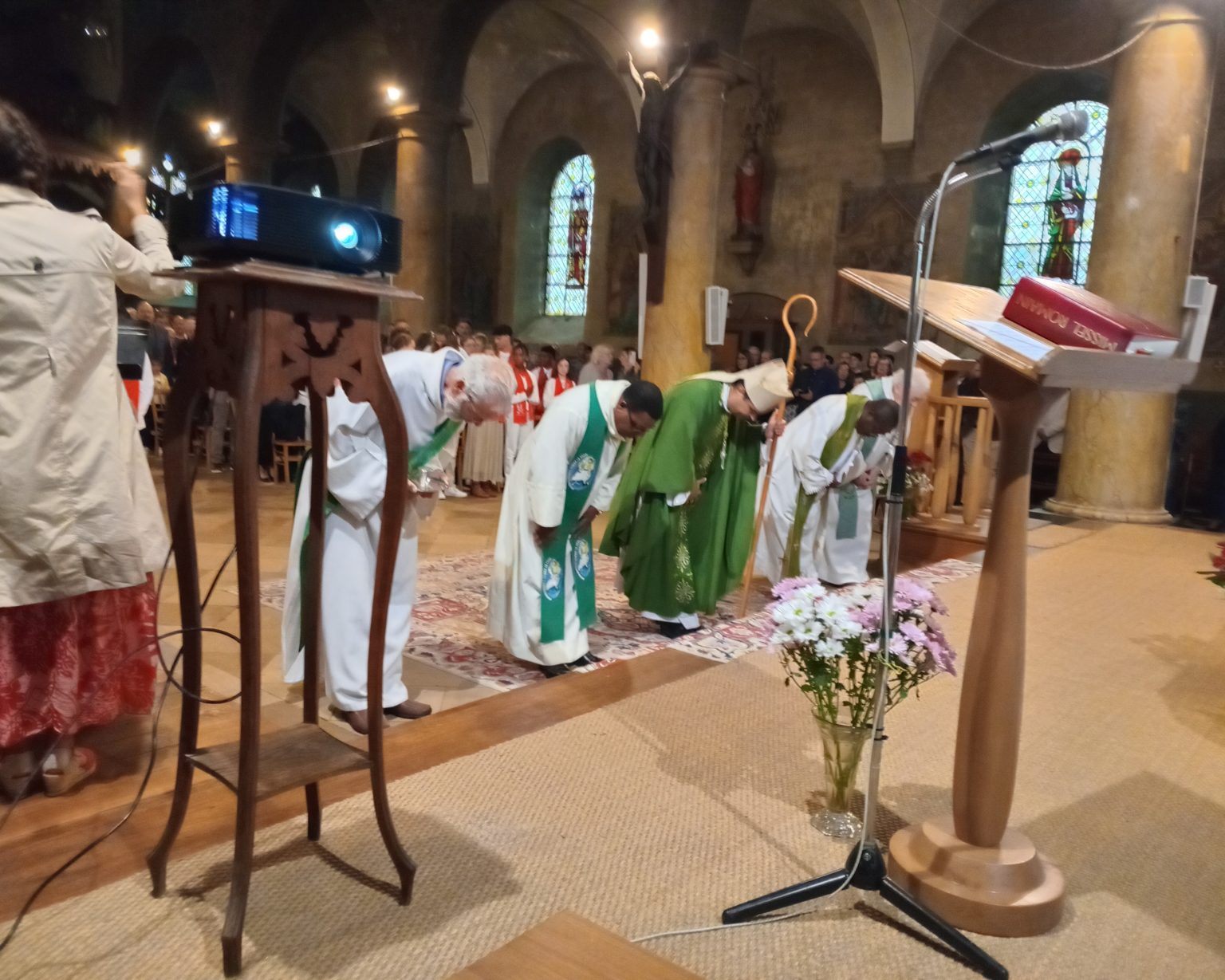 Dès le chant d’entrée, l’animation musicale par la famille Bigot donnait le ton de la cérémonie : l’élévation de l’âme par la beauté des chants et l’harmonie des voix, accompagnées par l’orgue, la flûte ou a capella.
