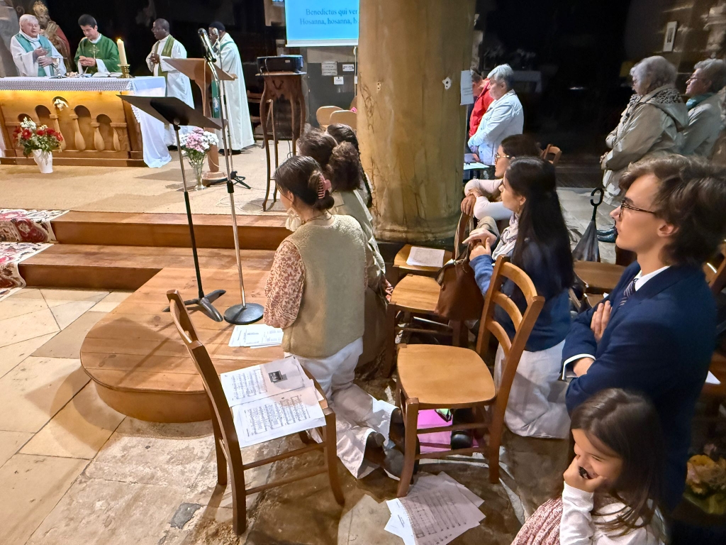 Viens, Esprit-Saint, t’emparer de mon cœur / Viens remplir de Ton feu mon âme, ô mon Dieu », chante l’assemblée soutenue par les choristes. Au moment de l’Offertoire, ces derniers offriront au recueillement général une très belle interprétation du Veni sancte spiritus. Mais c’est toute l’assemblée qui lors de la communion (« Recevez le Christ doux et humble / Dieu caché en cette hostie ») et de l’action de grâces (« Regardez l’humilité de Dieu / Et faites-lui l’offrande de vos cœurs ») manifestera par son chant sa perception intime du mystère d’abaissement de notre Sauveur qui est au cœur de notre foi. Bel effet de l’Esprit-Saint que le choix de ces textes.